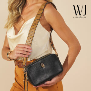 WJ Bolsa Transversal Media Lezard Alca Laser Preta