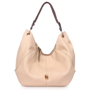 WJ Bolsa Hobo Grande Bicolor Com Alca Trançada Bege