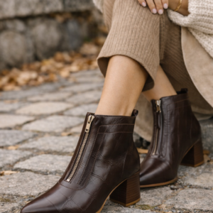Aquarela Bota Premium Zíper Frontal Couro Enguia Brown