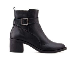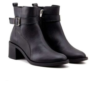 Lialine Bota Com Fivela Salto Bloco Couro Preto
