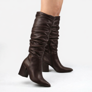 Bottero Bota Cano Longo Salto Bloco Couro Marrom