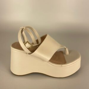 Lialine Sandália Anabela Tira Croch� Couro Nude