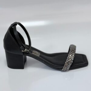 Santalolla Sandália Salto Bloco – Com Brilho Sintético Preto