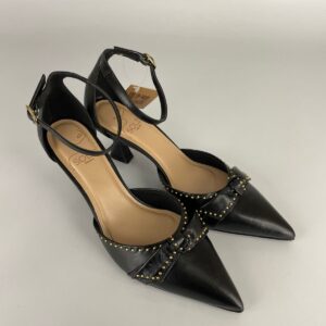 Solis Scarpin Valentino Salto VĂrgula Couro Preto E Malbec