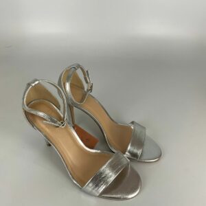 Solis Sandália Metalizada Salto Bloco Couro Prata
