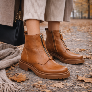 Aquarela Bota Coturno Couro Carmel