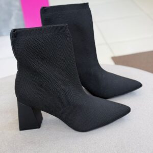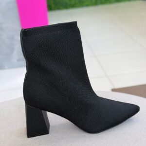 Bebecê Bota Salto Bloco Bico Fino Knit Preto