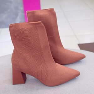 Bebecê Bota Salto Bloco Bico Fino Knit Pecan