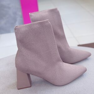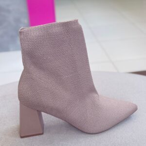 Bebecê Bota Salto Bloco Bico Fino Knit Taupe
