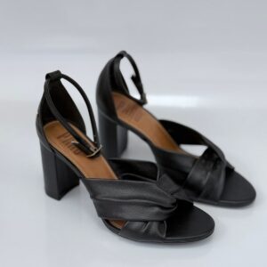 Parô Sandália Tira X Salto Bloco Couro Preto