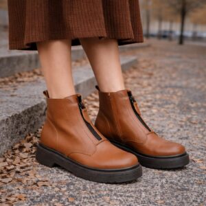 Aquarela Bota Coturno Couro Carmel