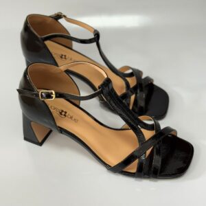 Aquarela18 Sandália Salto Bloco Couro Verniz Preto