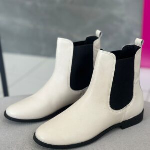 Lialine Bota Chelsea Baixa Couro Off White