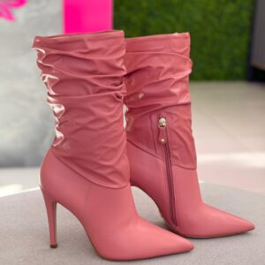 Cecconello Bota Cano Enrugado Salto Fino Sintético Goiaba