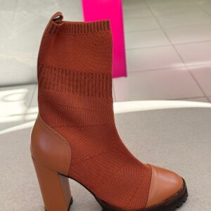 Cecconello Bota Salto Alto Couro E Knit Whisky