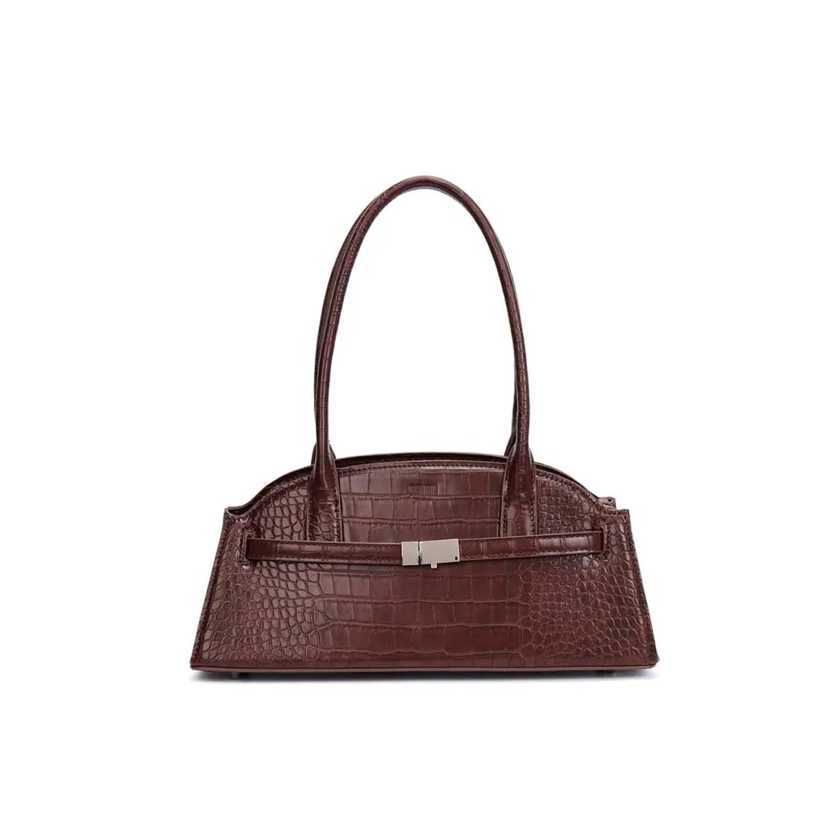 Bolsa média em material tecnológico com acabamento croco que imprime textura marcante e sofisticada ao visual. Na tonalidade marrom dark, traduz elegância atemporal e versatilidade para compor produções que transitam do dia à noite com facilidade. O fechamento em zíper garante segurança no uso, enquanto a alça de ombro proporciona conforto e praticidade na rotina. Um modelo que une presença, funcionalidade e estilo em cada detalhe.