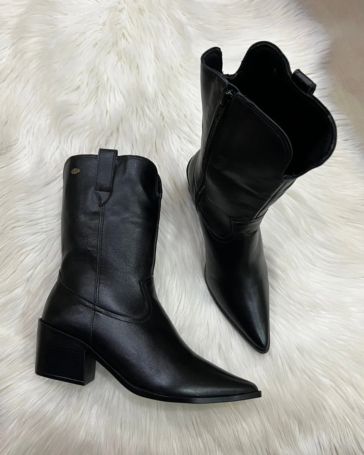 Confeccionada em couro, ela oferece durabilidade, maciez e conforto para o uso diário. O bico fino alonga a silhueta, enquanto o cano médio e o salto bloco garantem estabilidade e praticidade ao caminhar. O zíper lateral facilita o calce, tornando o modelo ainda mais funcional.