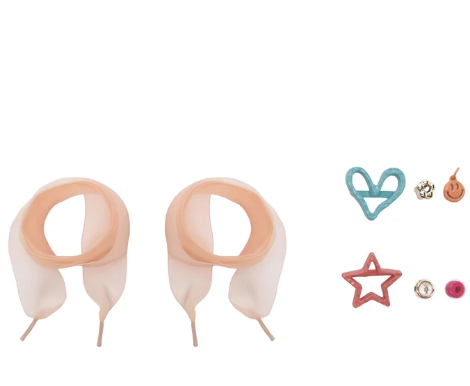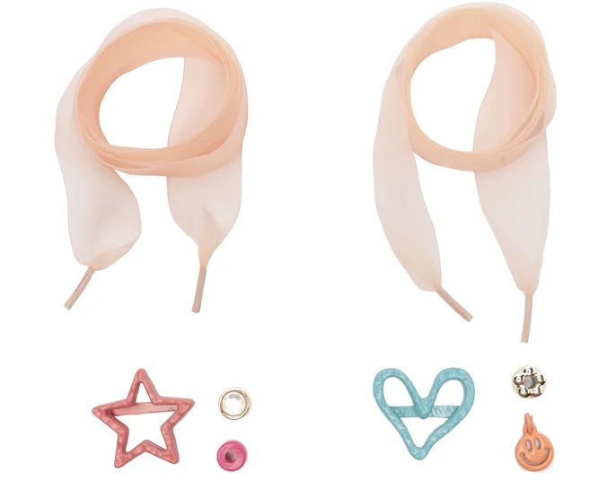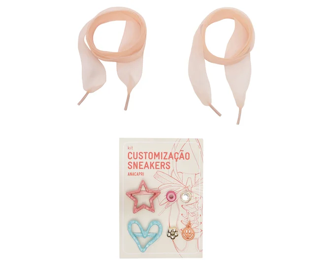 Kit personalizável Anacapri, na cor bege. O kit foi idealizado para customizar o estilo do tênis. Contém um cadarço em tecido voil com transparência e um conjunto de seis pingentes metálicos em diversos tamanhos. O kit é vendido separadamente do tênis.