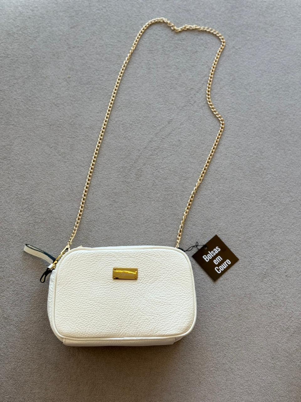 Alça: Corrente dourada (ombro ou transversal)