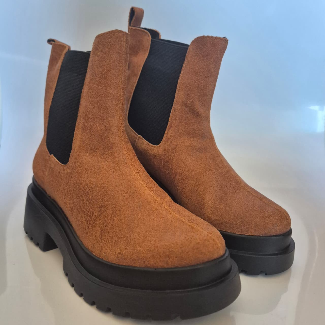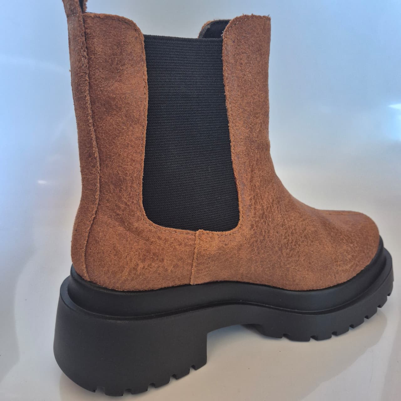 Aquarela Bota Chelsea Tratorada Couro Caramelo