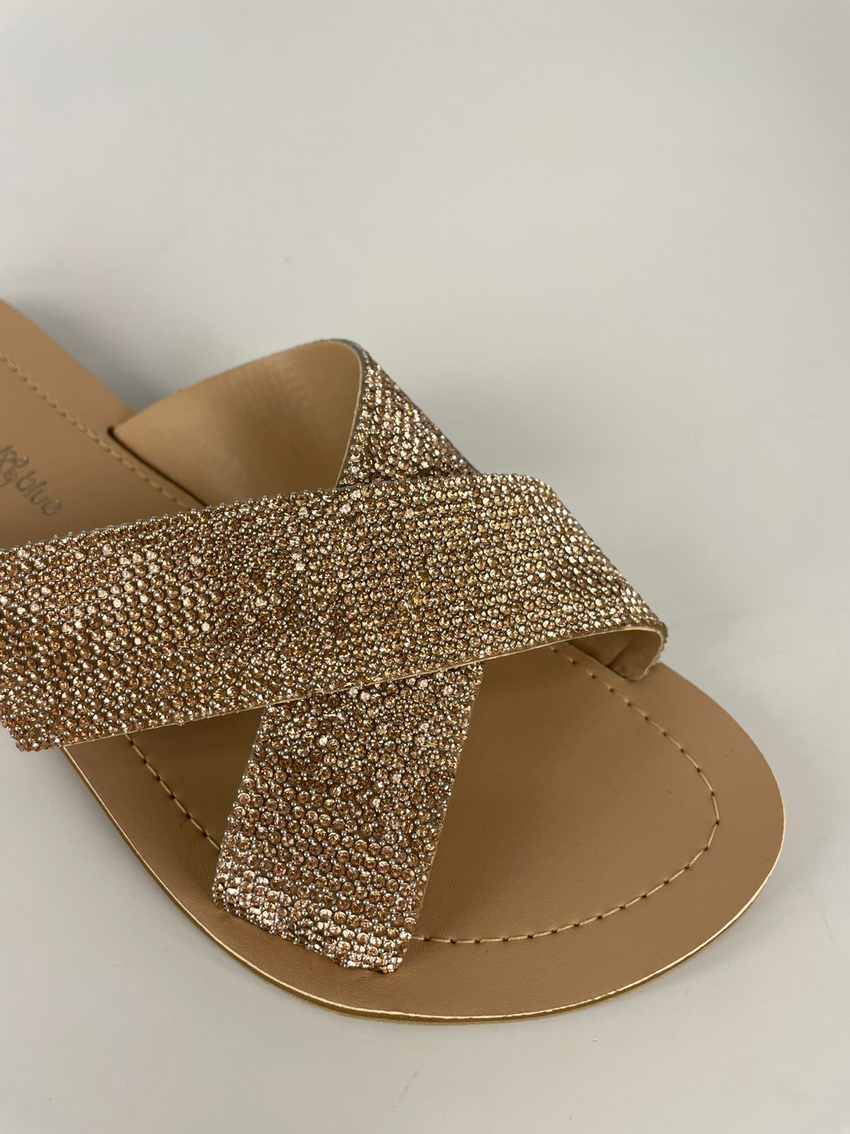 Seu design sofisticado e atemporal combina o conforto da palmilha macia com o brilho delicado das pedrinhas, criando uma peça que transita com leveza entre o casual e o elegante.