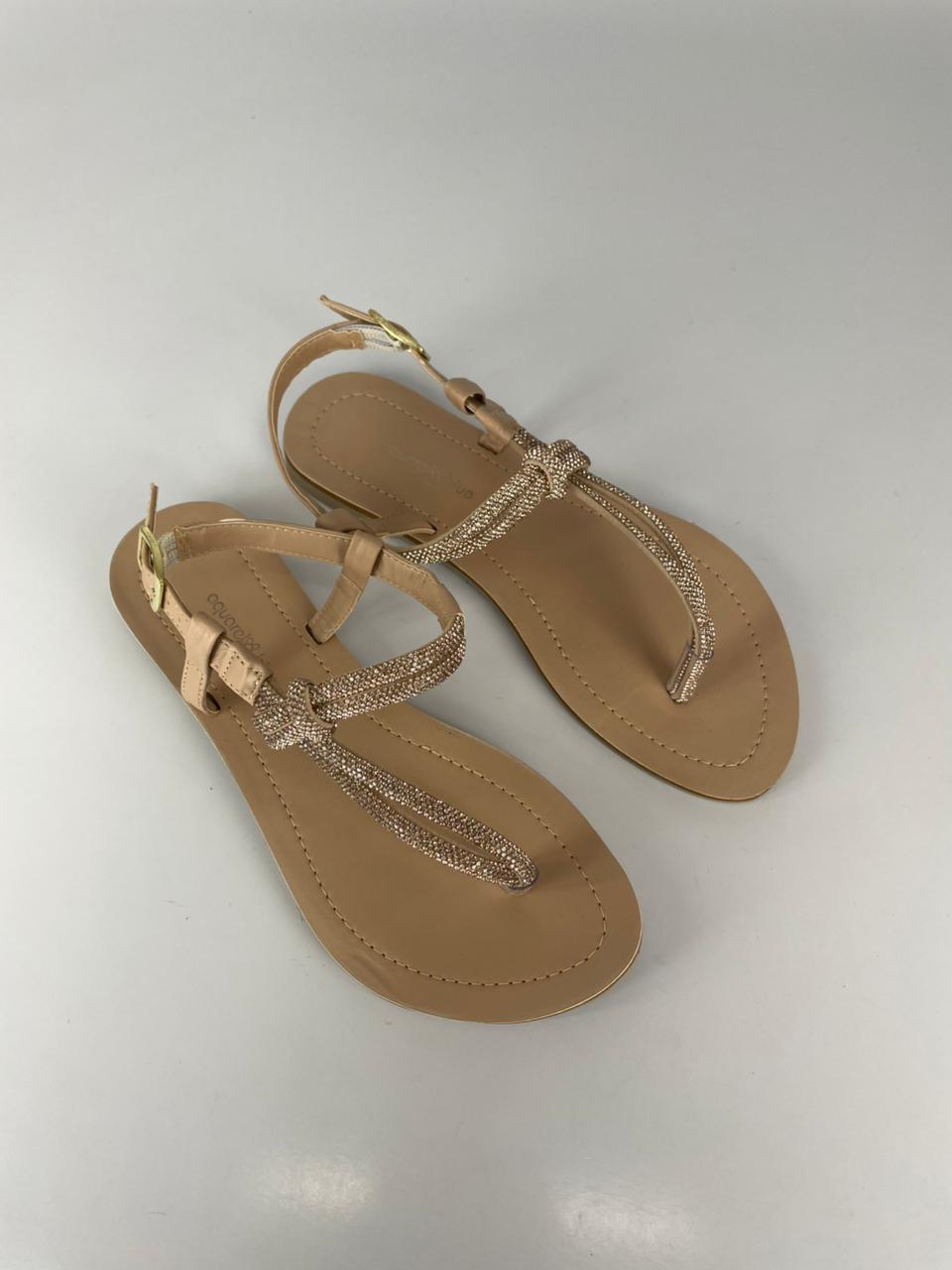 Leve, feminina e elegante, a Sandália Aquarela é perfeita para quem busca conforto sem abrir mão do estilo. Seu design com tiras finas cruzadas, adornadas por brilho, traz um toque sofisticado e moderno que combina com tudo — do jeans à saia leve.