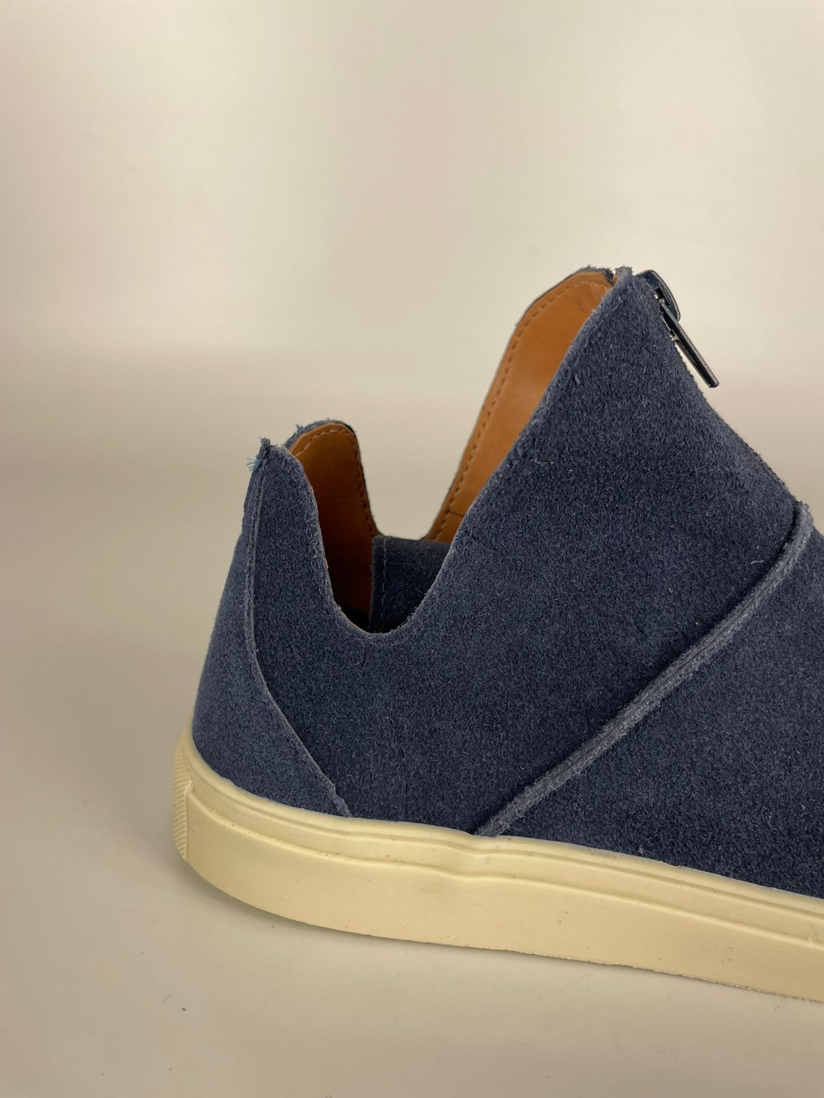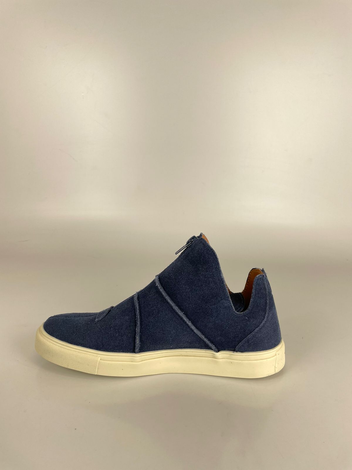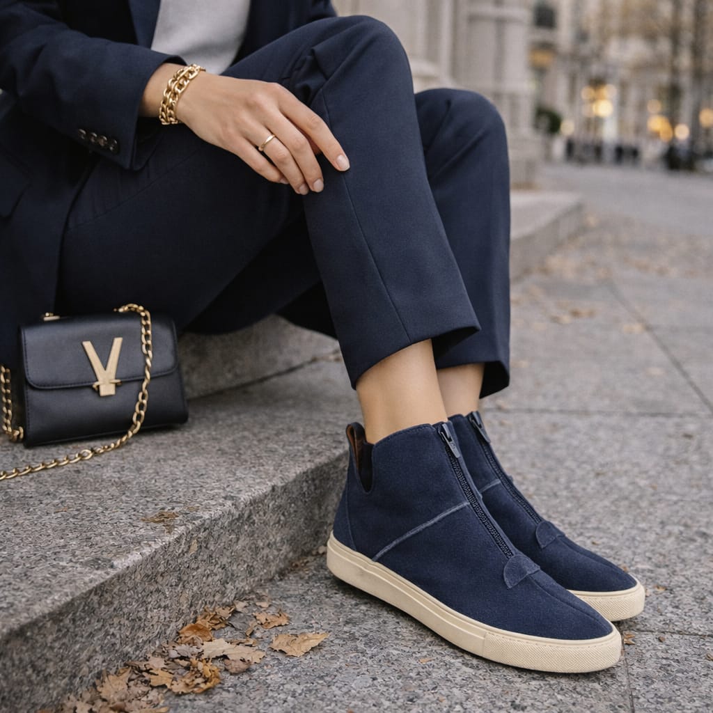 O grande destaque deste modelo é a substituição dos cadarços por um zíper frontal/lateral estratégico, que confere um ar utilitário e moderno à peça. Confeccionado em couro pelica de alta qualidade, ele garante uma sensação de leveza e flexibilidade que acompanha o ritmo da sua rotina.