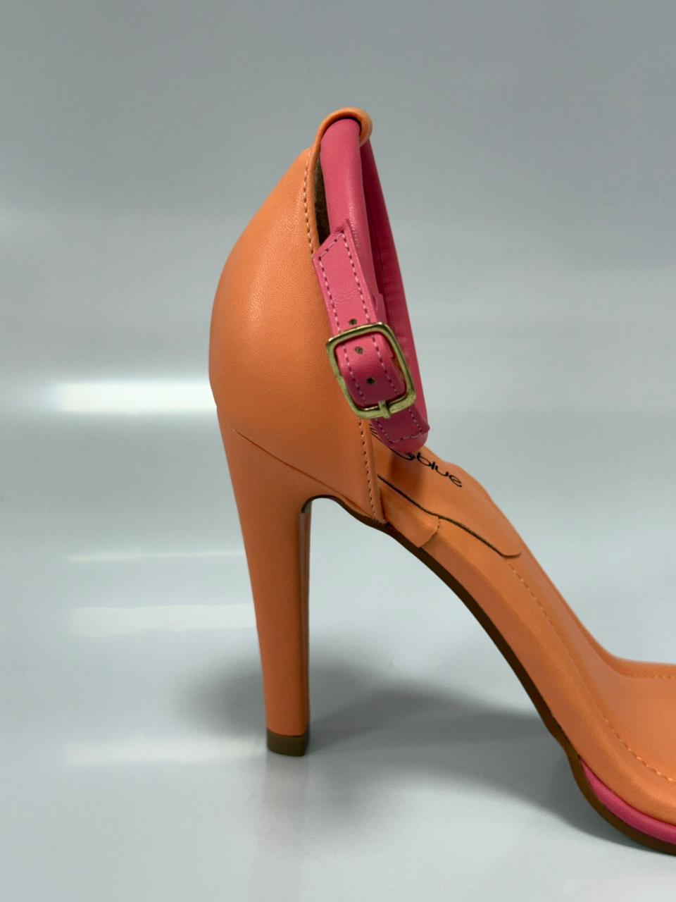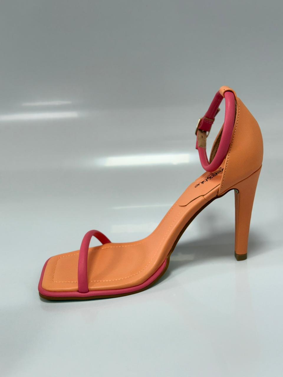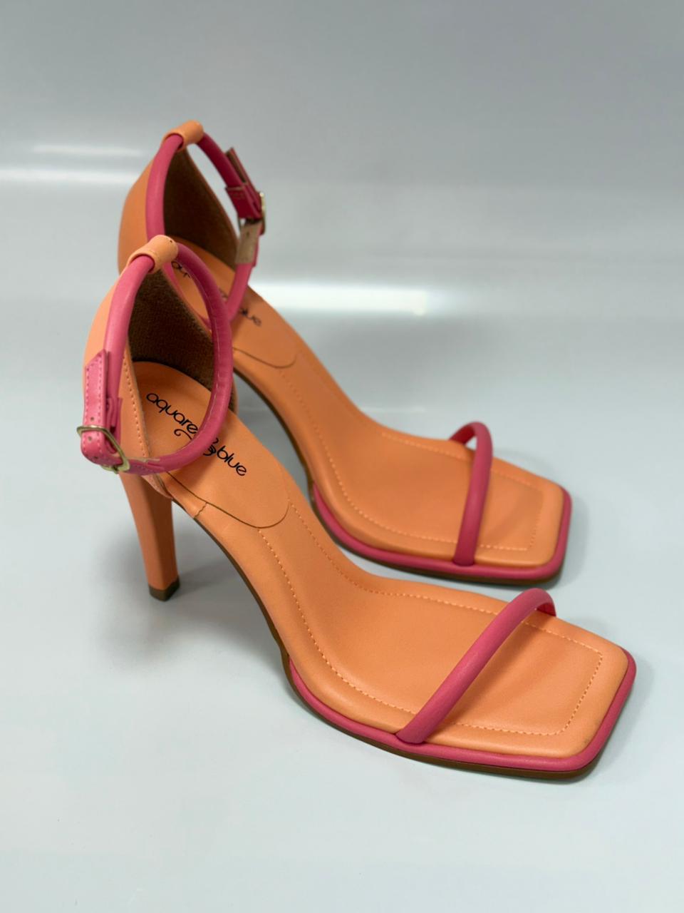 Aquarela12 Sandália Bicolor Salto Fino Napa Rose E Nude