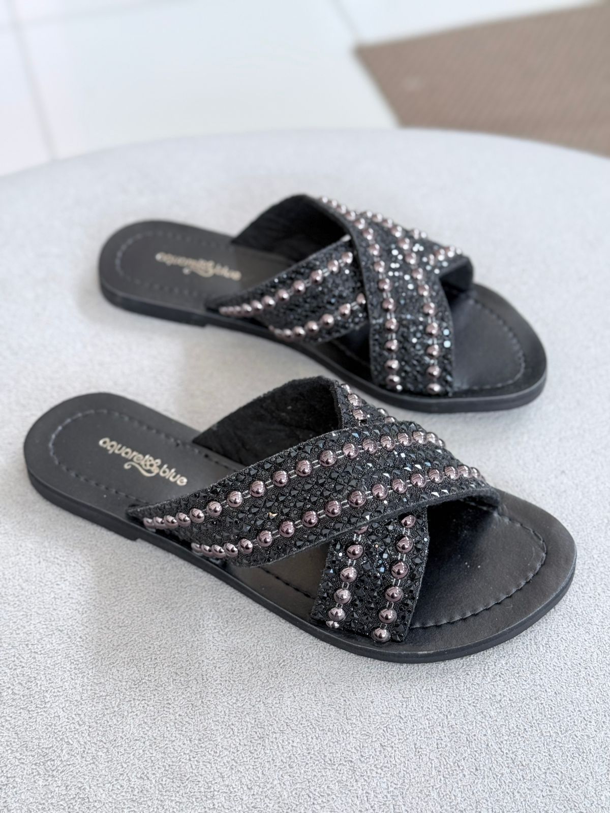 InÃcio / Papetes e Rasteiras / rasteiras / Aquarela9 Rasteira Rr 2422 Sintético Preto Aquarela9 Rasteira Rr 2422 Sintético PretoR$179,90 Guia de Tamanhos BRComprimento (cm)33223422,73523,136243724,73825,339264026,7 Tamanho: Nenhuma seleção Escolha uma opção3435Limpar Aquarela9 Rasteira Rr 2422 Sintético Preto quantidade Comprar SKU: Não aplicável Categorias: Papetes e Rasteiras, rasteiras Marca:Aquarela Calcular o Frete Não sei meu CEP Informação adicional Informação adicional Peso 385 g Dimensões 30 × 19 × 13 cm Tamanho 34, 35 Produtos relacionados Santa Lolla Chinelo X Gorgurão R$209,90 343536373839Comprar Santa Lolla Papete Com Nó R$319,90 343536373839Comprar Santa Lolla Sandália Rasteira Preta R$169,90 343536373839Comprar Santa Lolla Sandália Rasteira Calce Fácil Nude R$149,90 343536373839Comprar