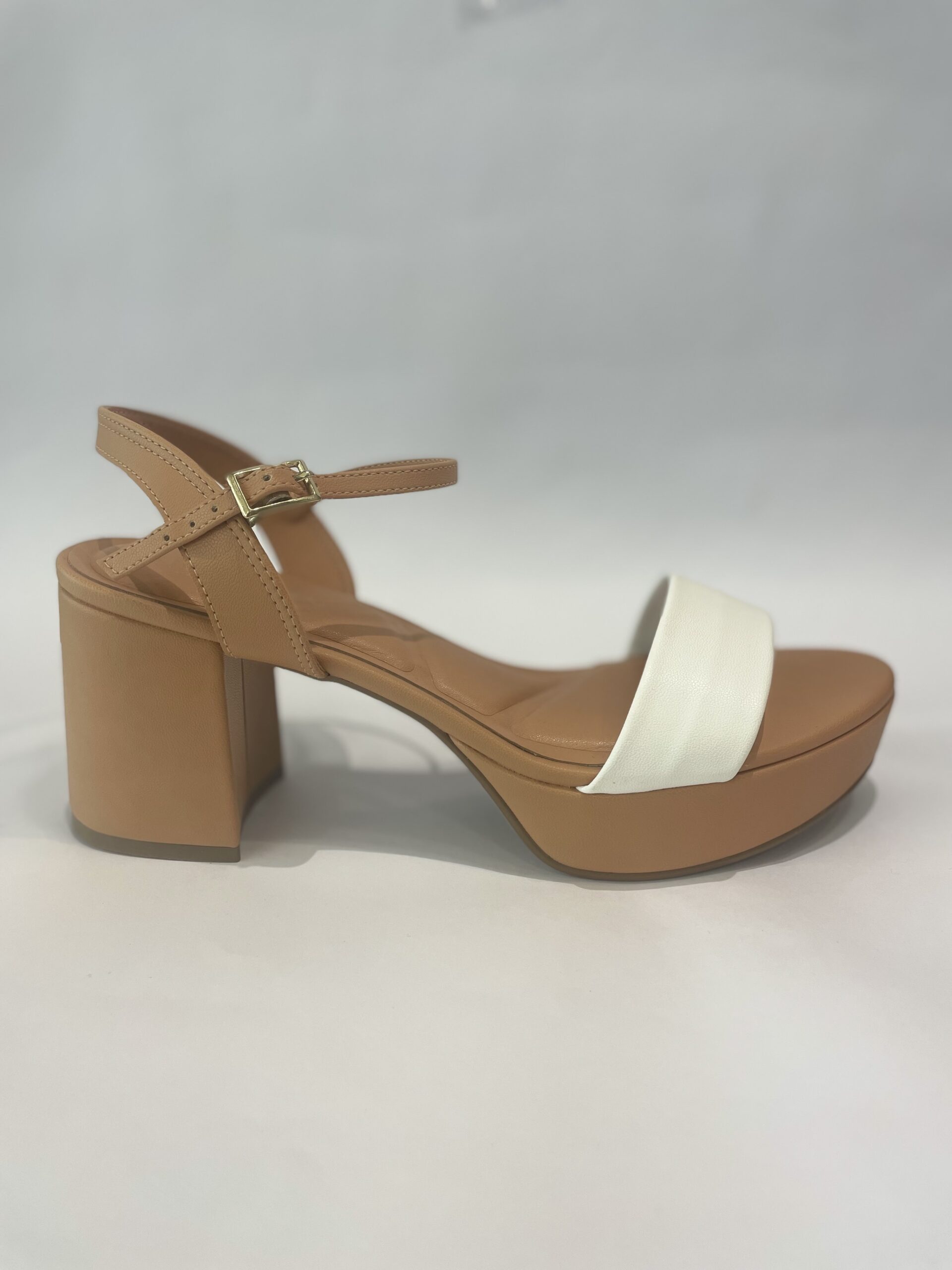 Bebecê Sandália T5021-318 Salto Bloco Napa Branco E Caramelo