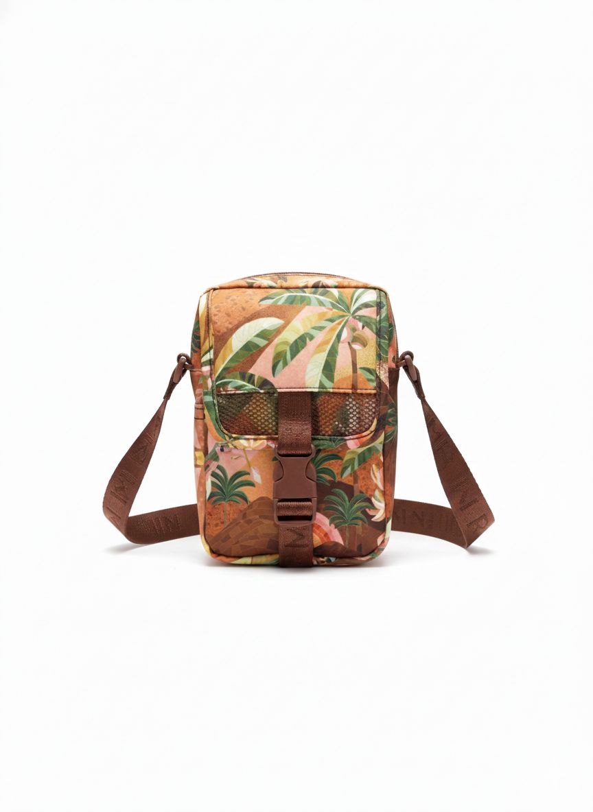 O modelo perfeito para quem quer carregar o essencial com estilo e leveza. Com uma estampa que traz o cenário clássico das praias brasileiras — coqueiros, sol e montanhas em tons de terracota, verde e rosa — ela é a tradução do “borogodó” carioca em um acessório funcional.