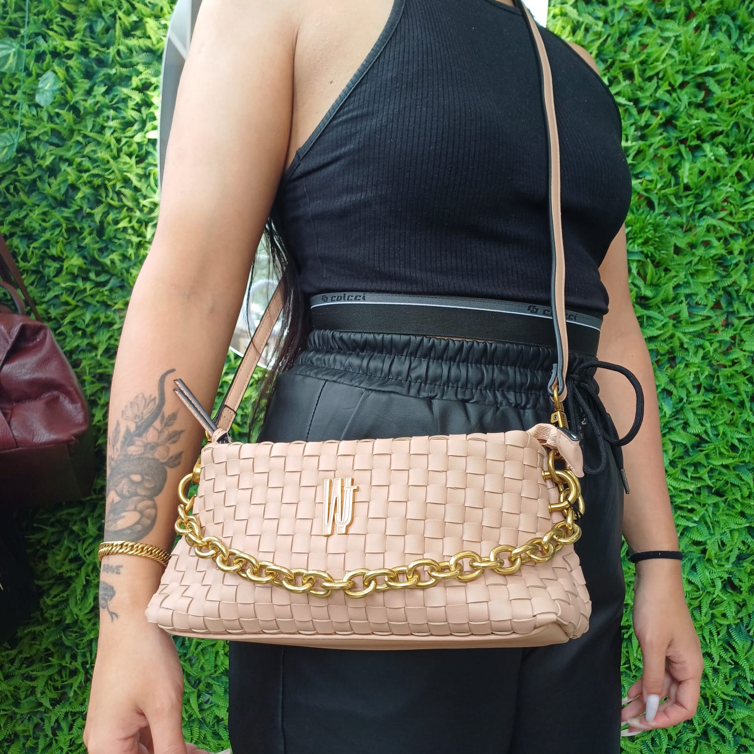 A Bolsa WJ Tressê com Corrente é o equilíbrio perfeito entre sofisticação e atitude. Com acabamento em trama tressê texturizada, ela traz um visual moderno e elegante, enquanto a corrente dourada robusta adiciona um toque de luxo e estilo urbano.