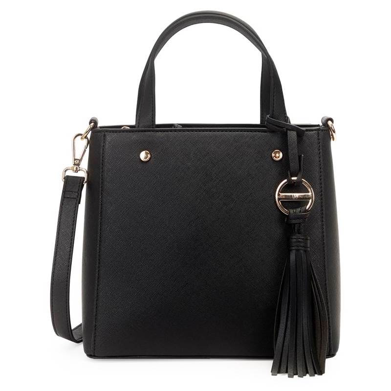 WJ Bolsa Satchel Media Com Chaveiro Personalizado Preta