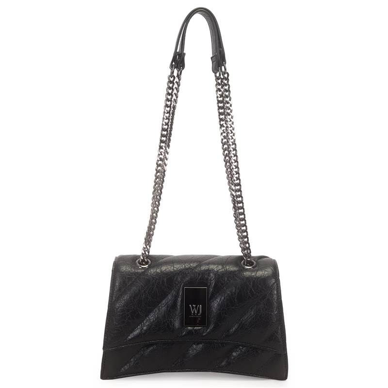 Wj Bolsa Transversal Média Matelassê Alça Corrente – Preta