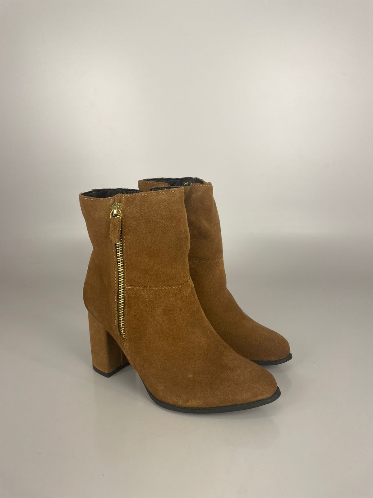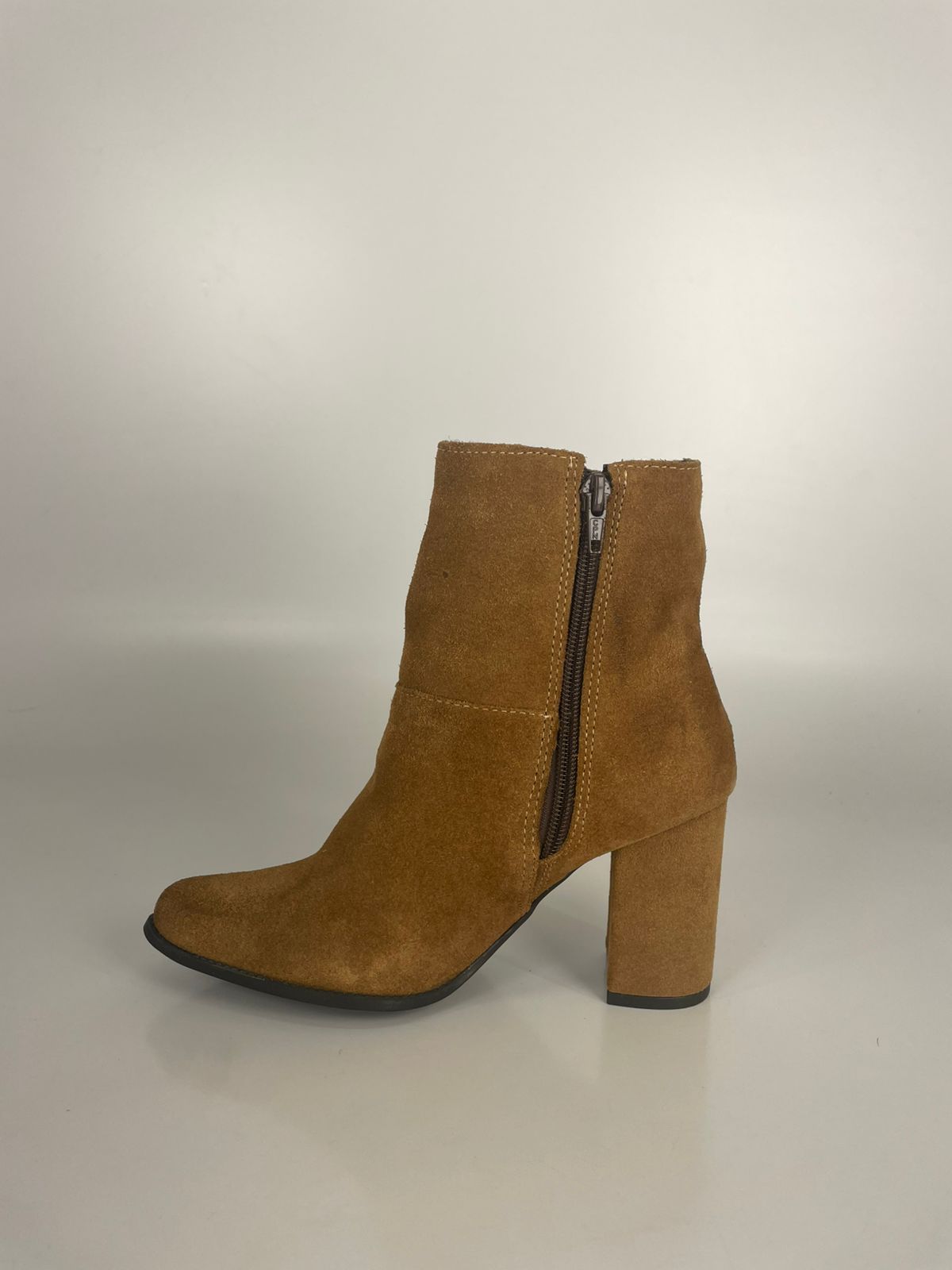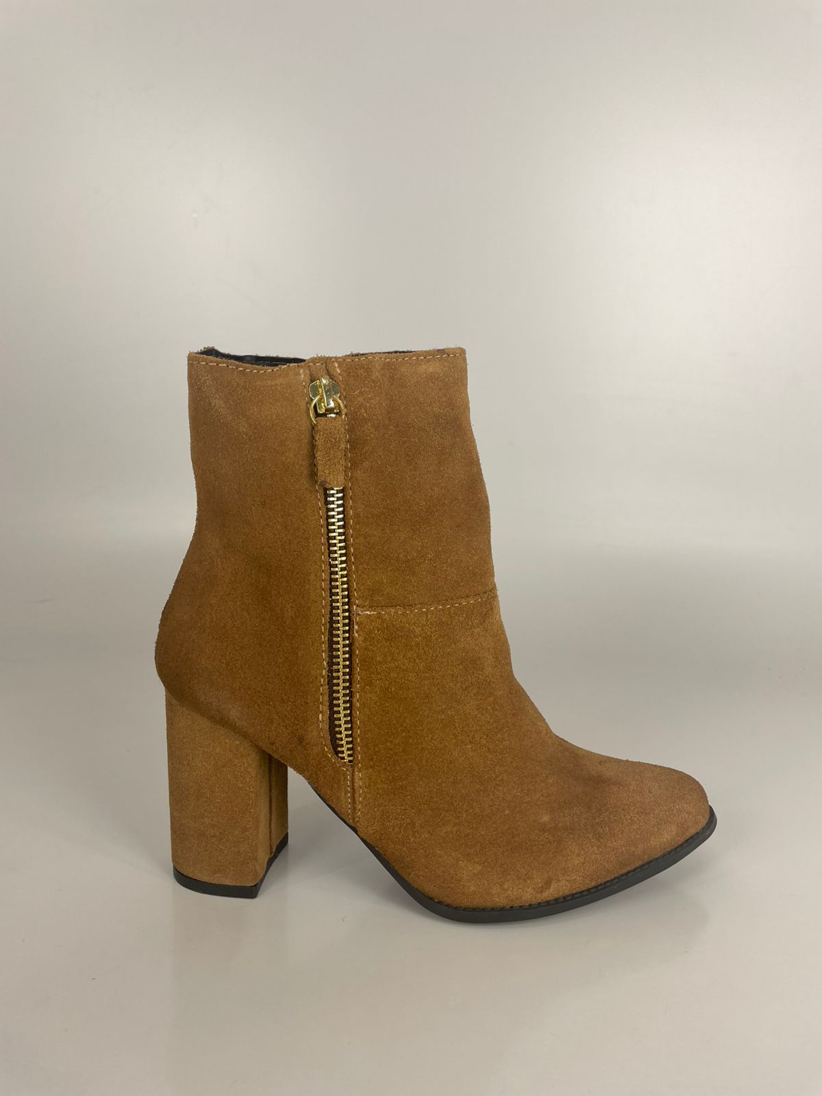 Esta é a Bota de Cano Curto em Camurça Caramelo, uma peça essencial para quem busca um estilo boho-chic com um toque de modernidade. Confeccionada em camurça de alta qualidade, ela apresenta um tom terroso vibrante que é a cara do outono. O destaque fica para o zíper lateral dourado exposto, que além de facilitar o calce, serve como um detalhe decorativo sofisticado. Com salto bloco médio e bico arredondado, esta bota une o charme rústico da camurça com a elegância urbana, sendo perfeita para combinar com jeans, saias florais ou vestidos de tricô.