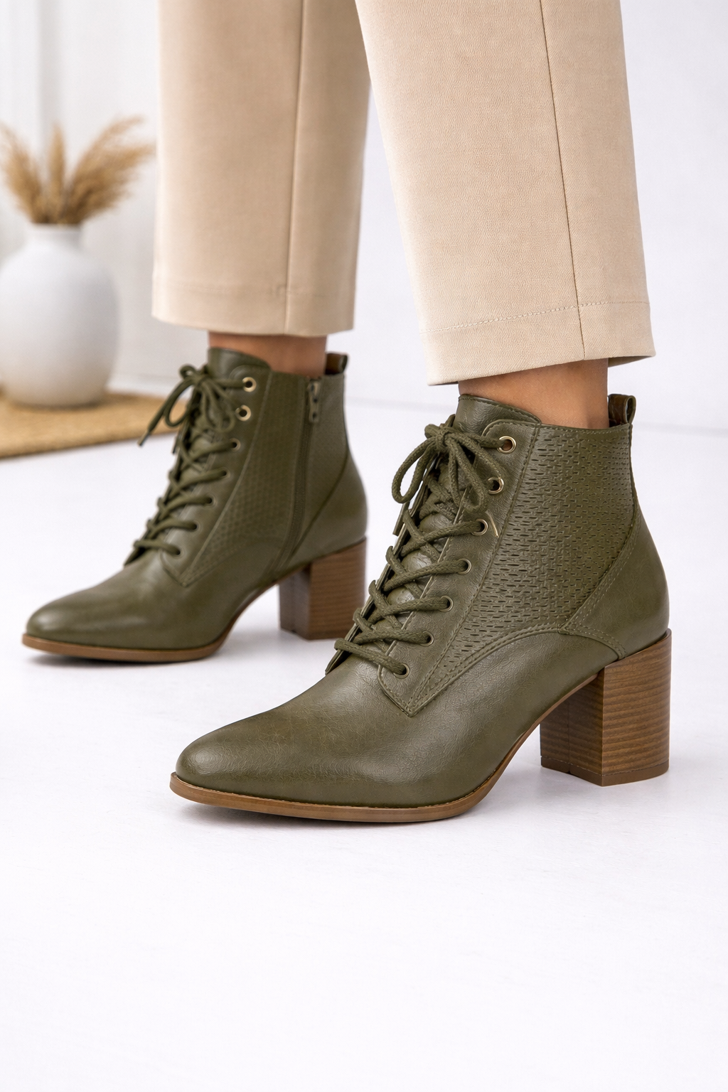 Moderna e cheia de personalidade, a bota Bottero é confeccionada em couro legítimo, unindo sofisticação e durabilidade. O modelo apresenta cano curto com detalhe em couro perfurado, que traz leveza e um toque diferenciado ao visual. De bico fino, conta com salto bloco alto em tom amadeirado, garantindo elegância e estabilidade ao caminhar. O fechamento em cadarço proporciona ajuste perfeito ao pé, enquanto o solado emborrachado oferece segurança e conforto para o uso diário. Ideal para compor produções urbanas e estilosas em qualquer estação.