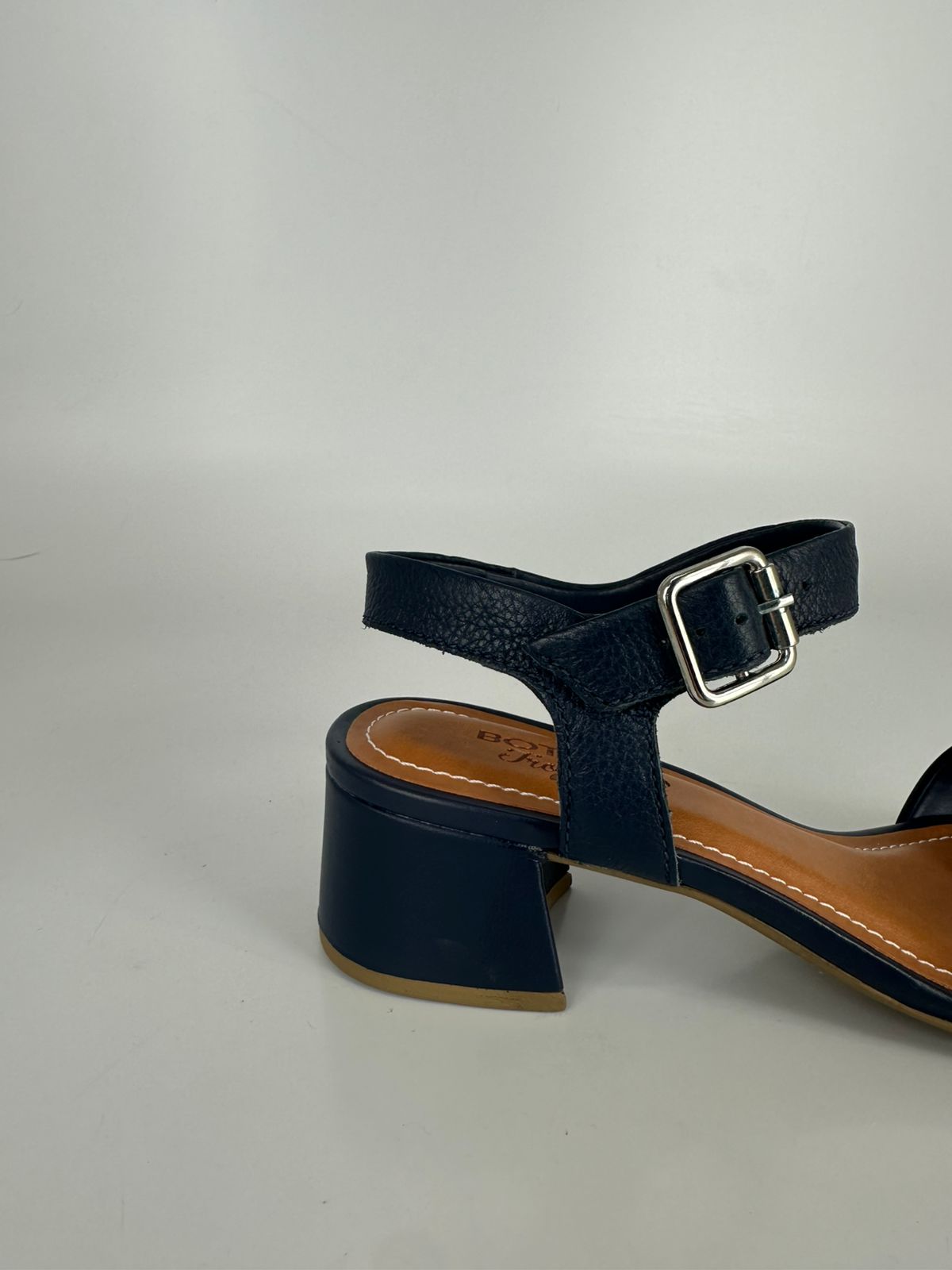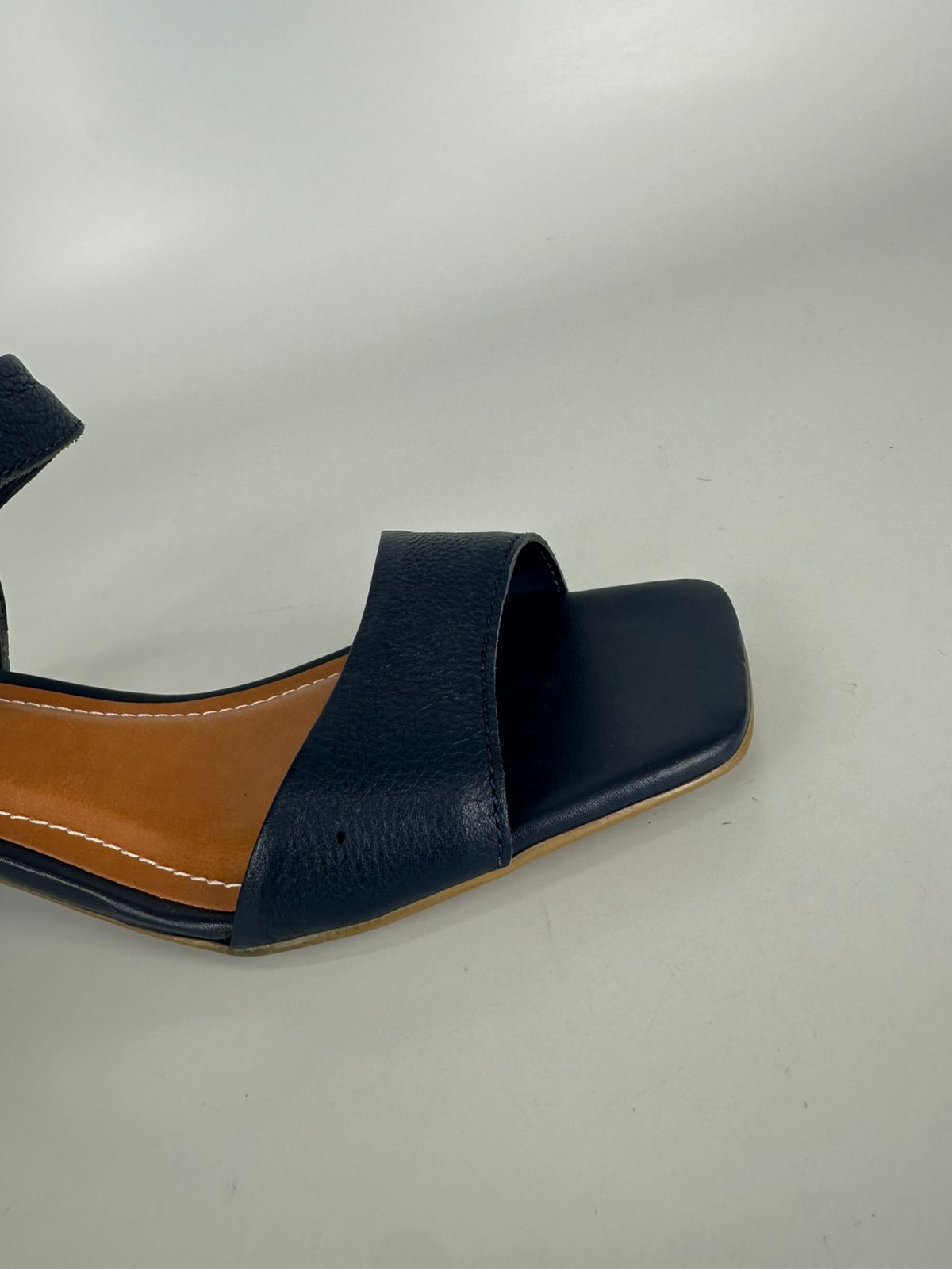 Elegante, versátil e confortável, a sandália Bottero em couro azul marinho é ideal para compor looks modernos e atemporais. O modelo apresenta design minimalista, com tira média sobre os dedos e fechamento no tornozelo com fivela metálica ajustável, garantindo um calce seguro e prático.