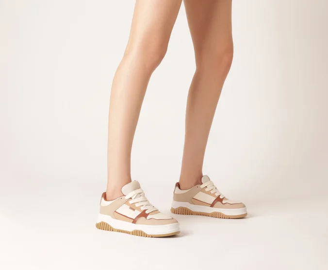 Com design robusto e contemporâneo, o modelo apresenta nova construção de solado, mais alto e estruturado, com sola flatform emborrachada branca e detalhe tratorado marrom, garantindo estabilidade e presença visual marcante. O cabedal traz um mix de materiais em napa e camurça, em tons de branco e bege, com recortes modernos que elevam o visual.