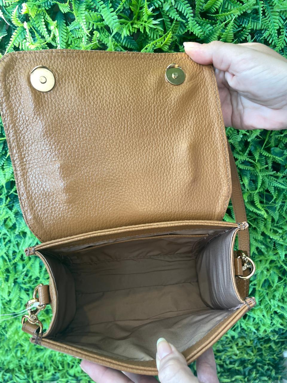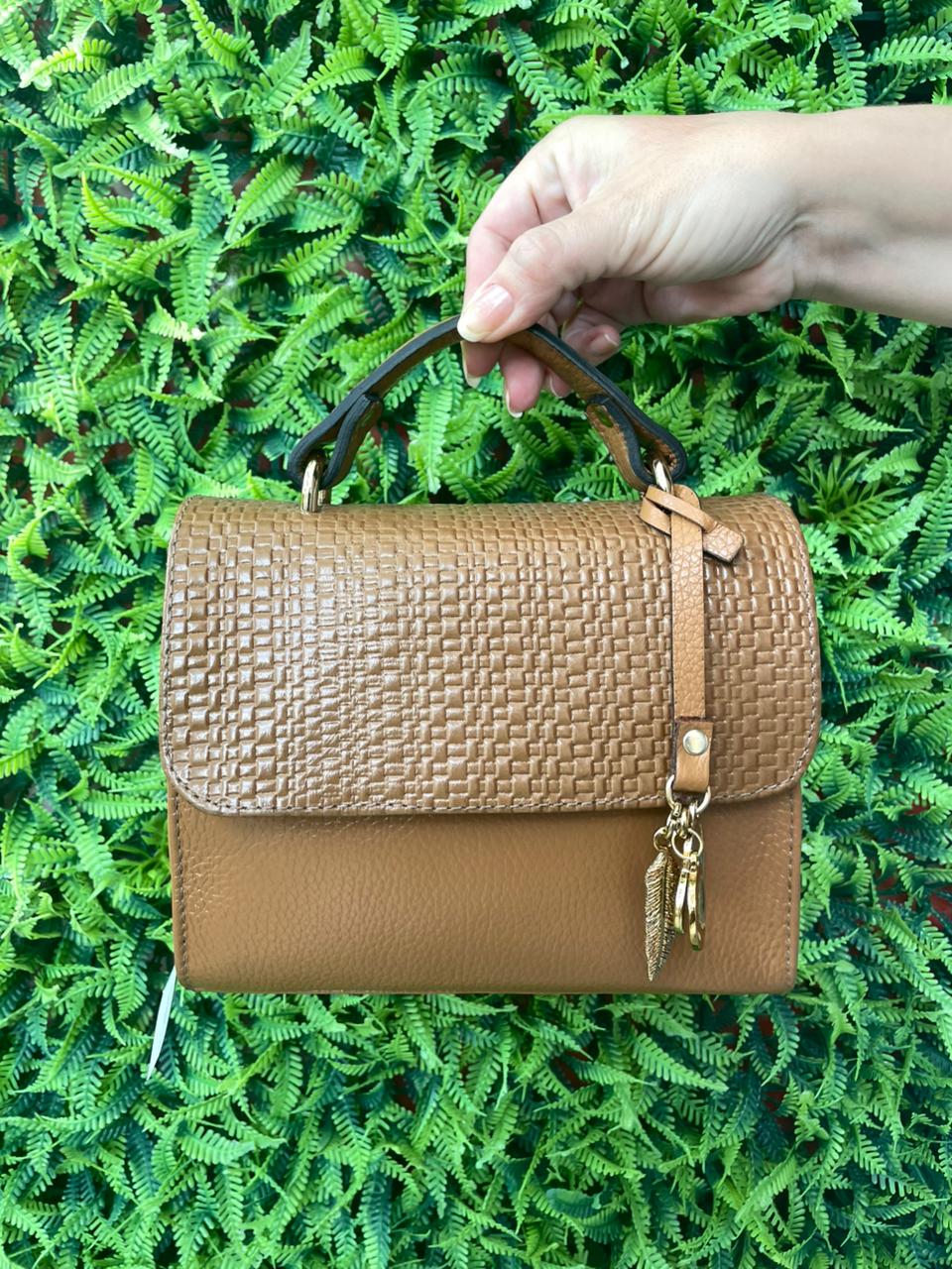 Com tampa em textura tressê, corpo em couro floater e detalhes dourados que elevam o charme, ela é aquela bolsa que acompanha você do dia a dia às produções mais especiais.