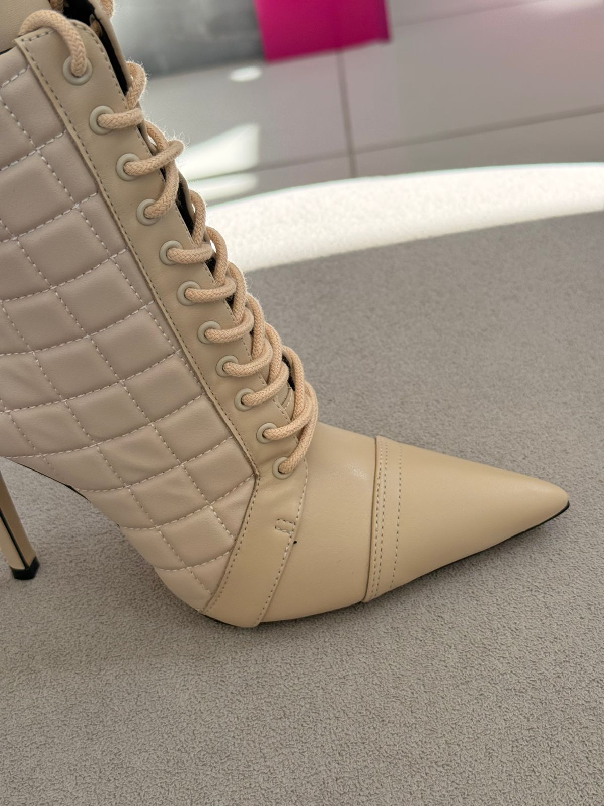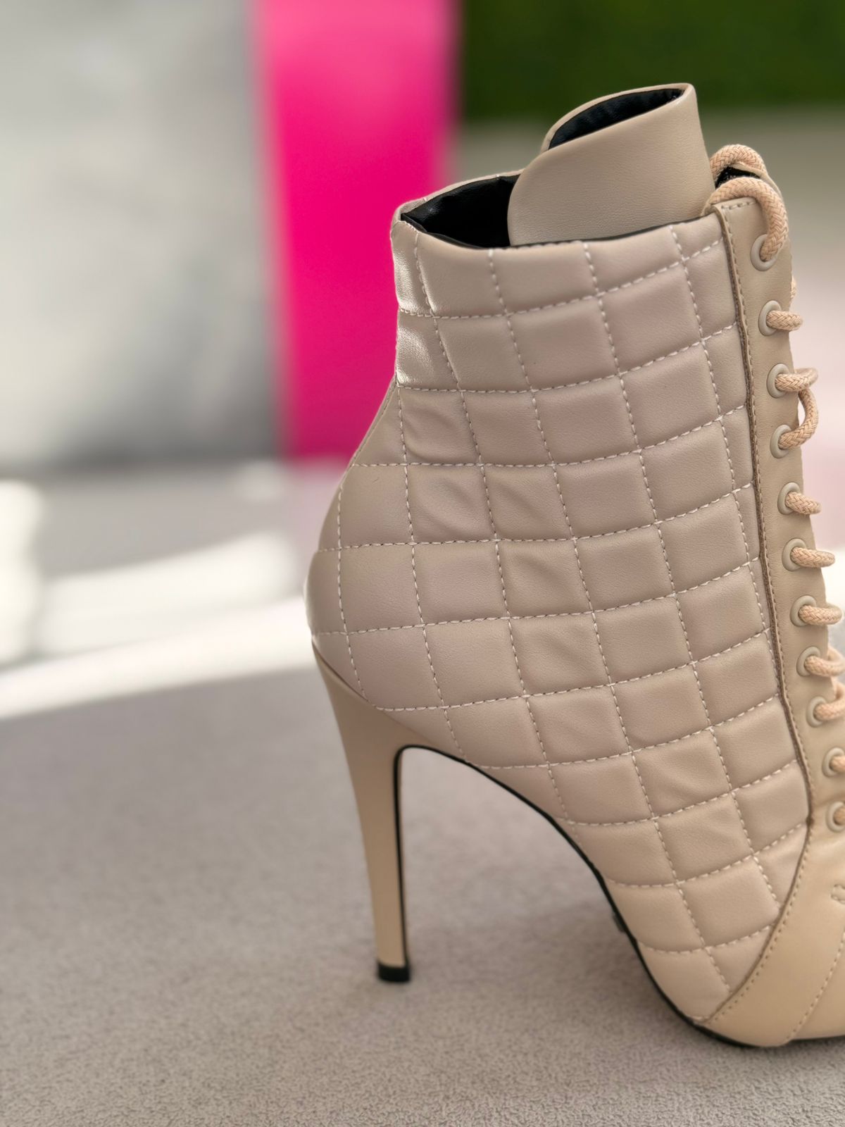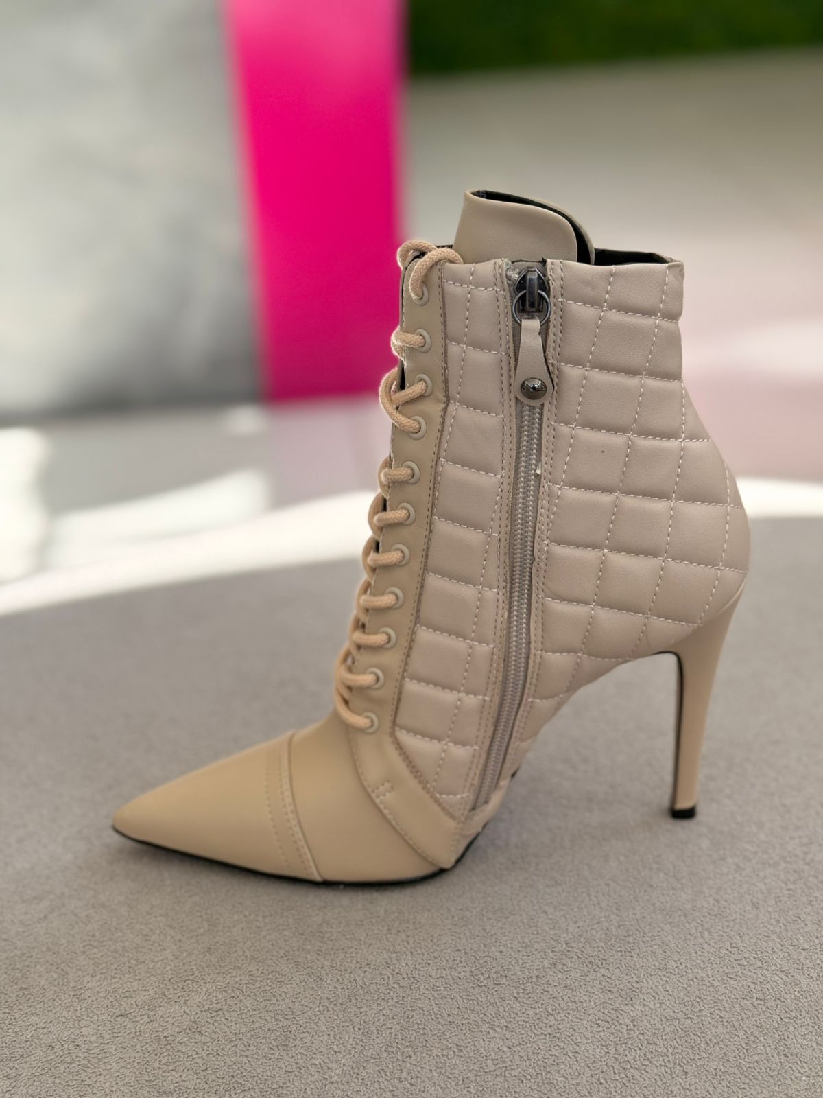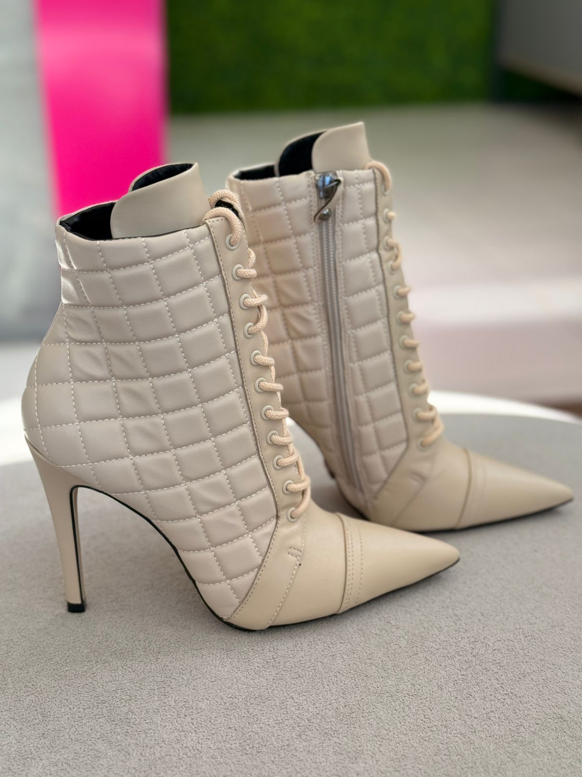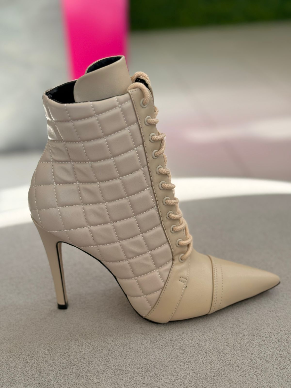 Cecconello Bota Matelassê Salto Fino Soft Creme