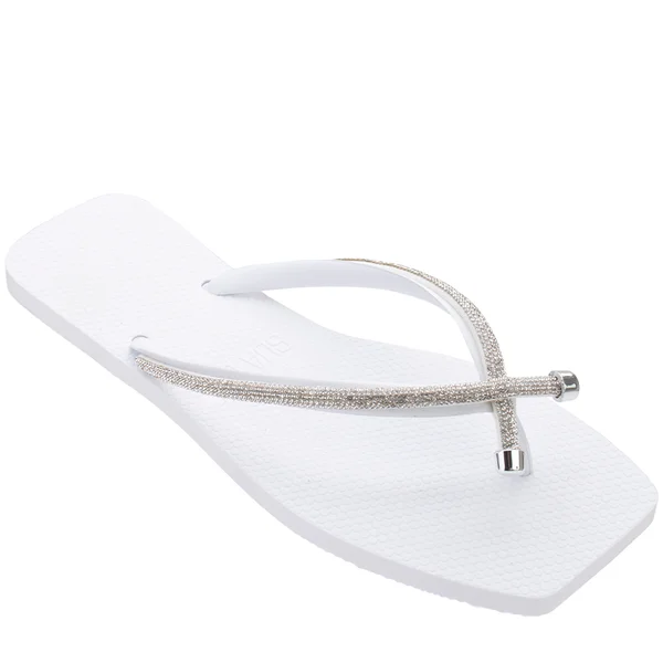 O Chinelo Sua Cia vai se tornar o seu queridinho, pois sua modelagem é elegante e fica super delicado nos pés, além de ser confortável. O bico quadrado é uma forte tendência da estação e promove um visual moderno e cheio de estilo. Um casual elegante para você arrasar em todos os lugares! Confeccionado em material sintético com acabamentos reforçados. Palmilha em PU macio levemente texturizado promove conforto e bem estar durante todo o uso, enquanto o solado em borracha flexível oferece passos leves e aderentes.
