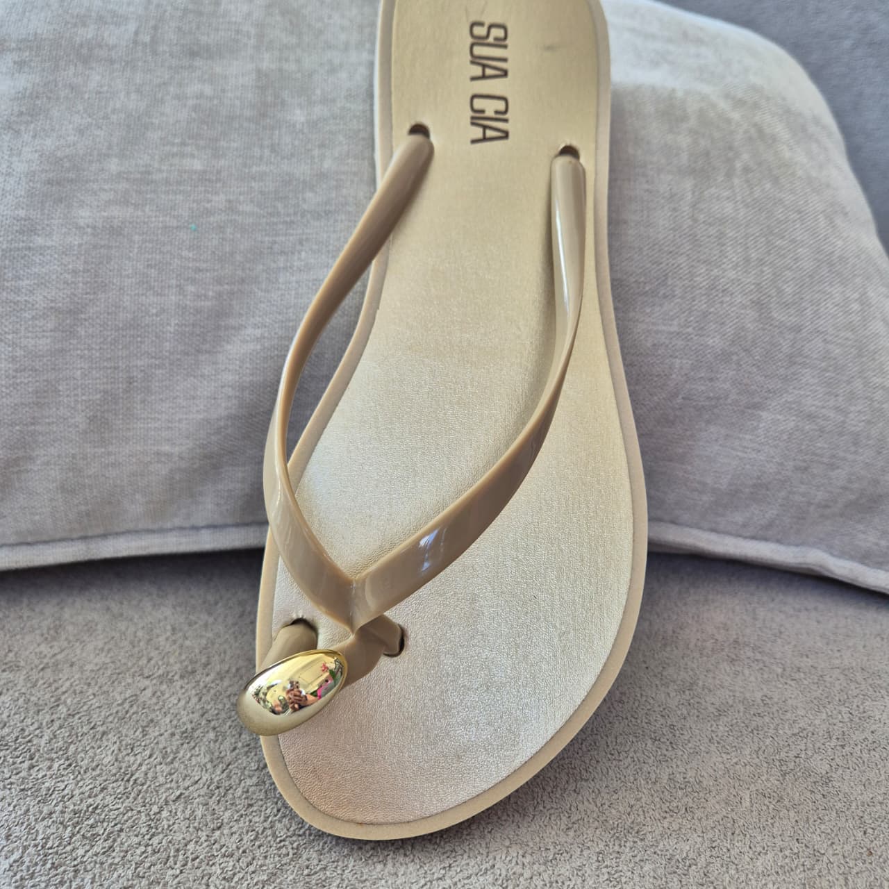 O Chinelo Sua Cia vai se tornar o seu queridinho, pois sua modelagem é elegante e fica super delicado nos pés, além de ser confortável. O bico quadrado é uma forte tendência da estação e promove um visual moderno e cheio de estilo. Um casual elegante para você arrasar em todos os lugares! Confeccionado em material sintético com acabamentos reforçados. Palmilha em PU macio levemente texturizado promove conforto e bem estar durante todo o uso, enquanto o solado em borracha flexível oferece passos leves e aderentes.