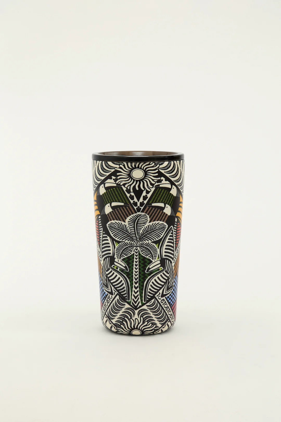 Com estampa tropical marcante e cheia de personalidade, ele deixa sua rotina mais leve e bonita — seja com café, água, suco, chá ou até aquele drink.