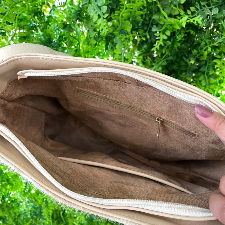 O modelo traz alça regulável, fechamento em zíper e amplo espaço interno com divisória e bolso adicional, garantindo praticidade sem abrir mão do estilo.
