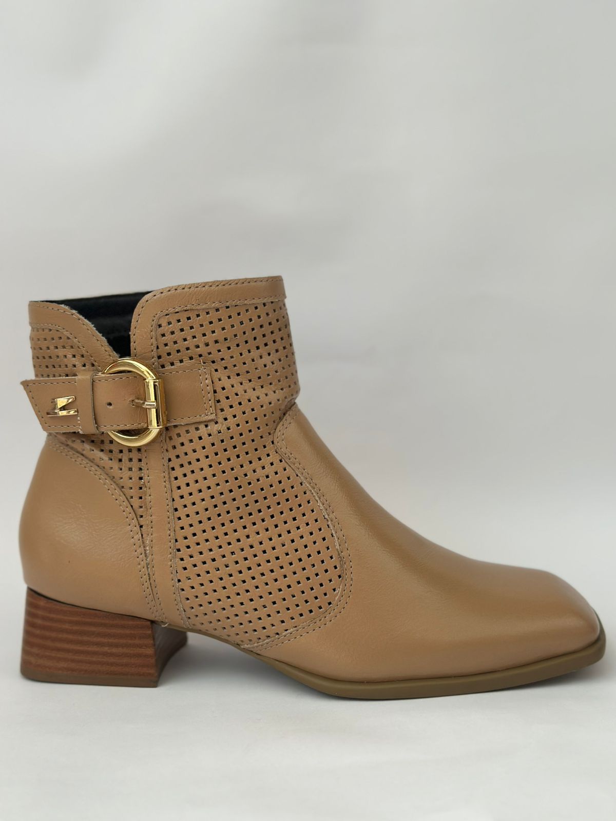Bota Dinamirtz – Bege em couro de cabra perfurado com fivela lateral