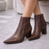 Bota Dinamirtz – Marrom em couro de cabra com bico texturizado e salto bloco
