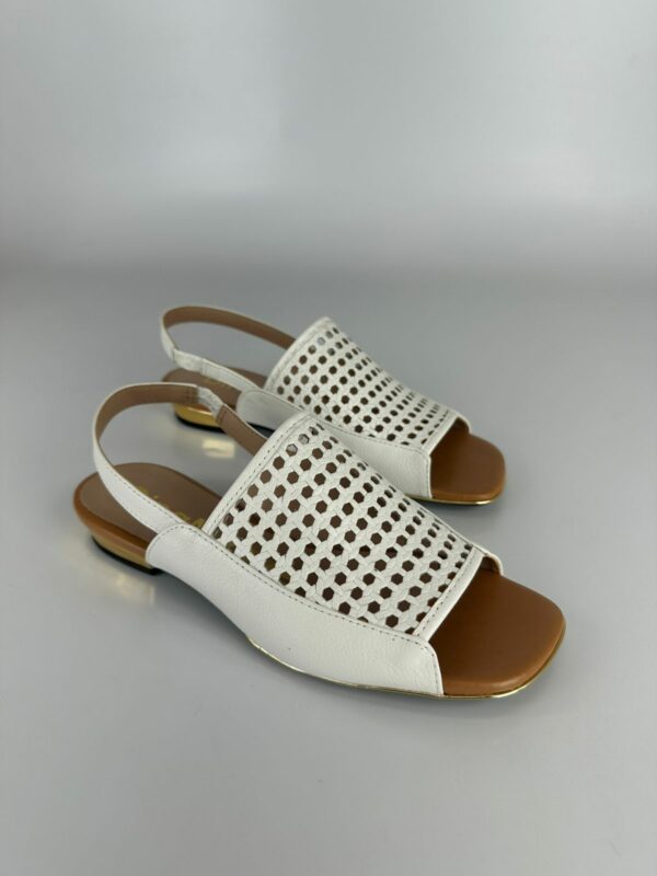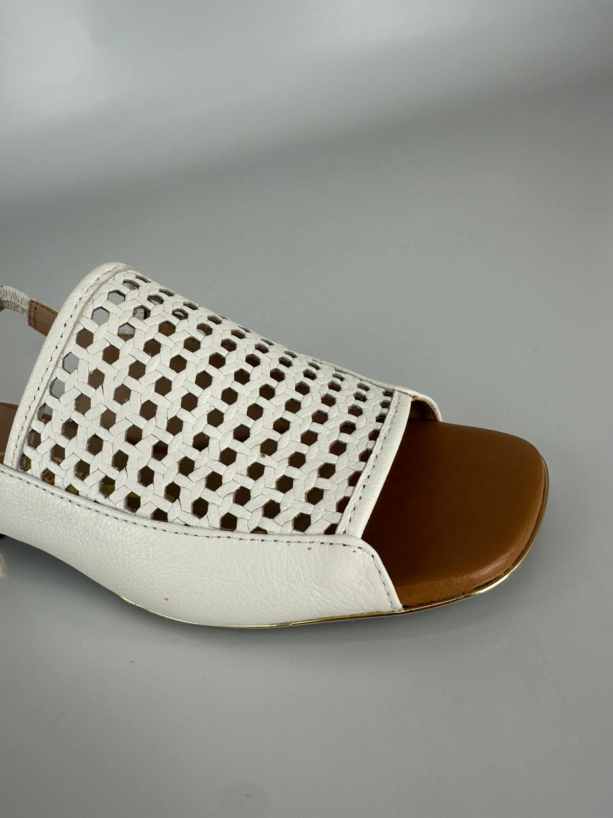 Uma sandália rasteira muito elegante, toda produzida em couro bem macio, com vazados no peito do pé.
