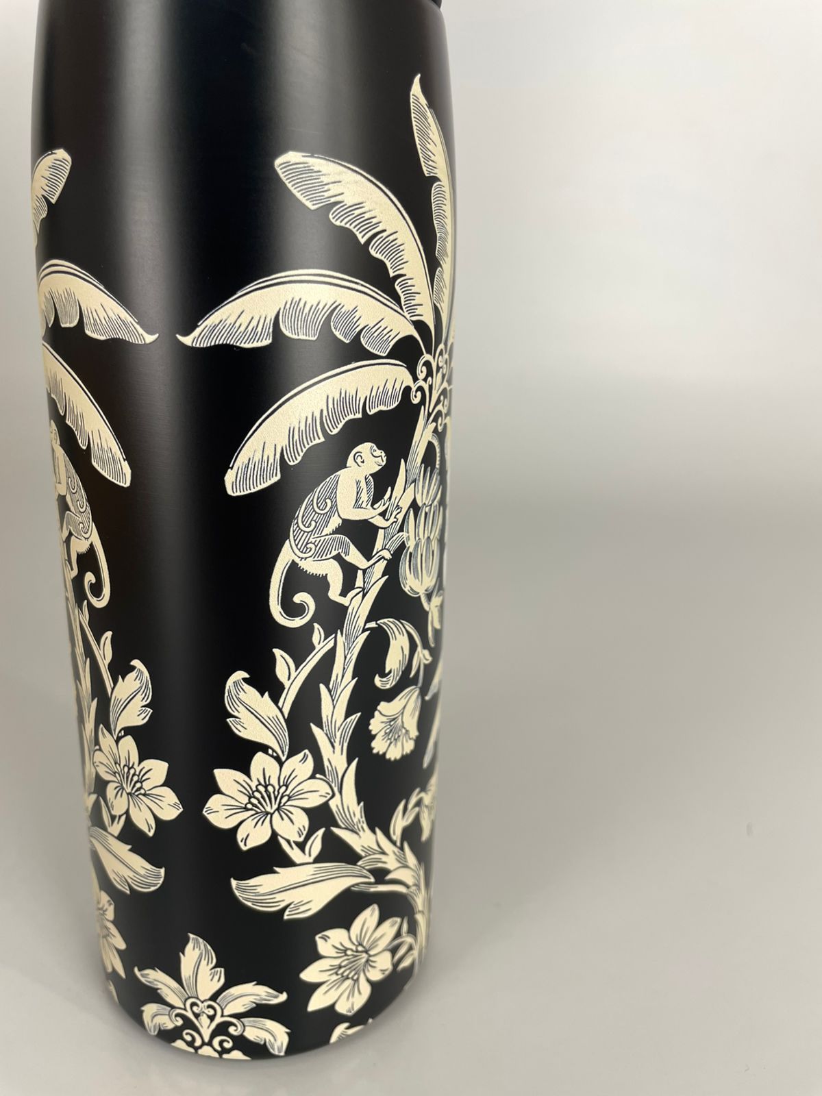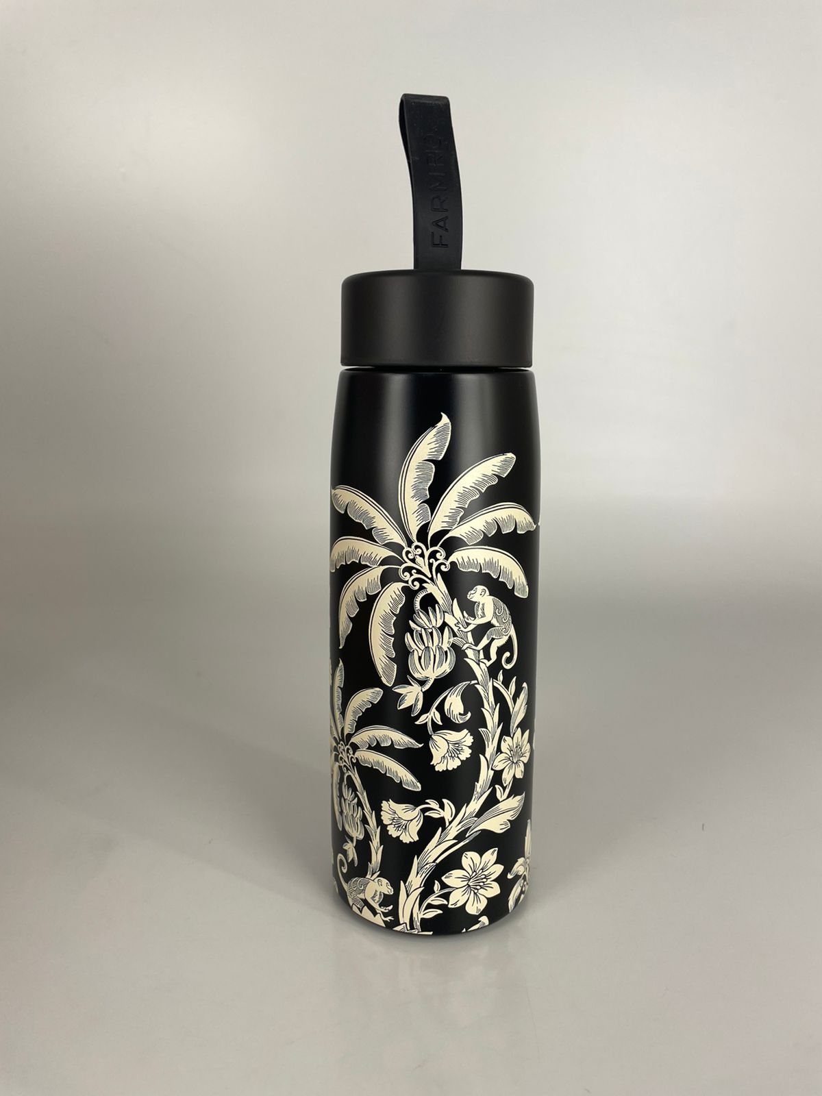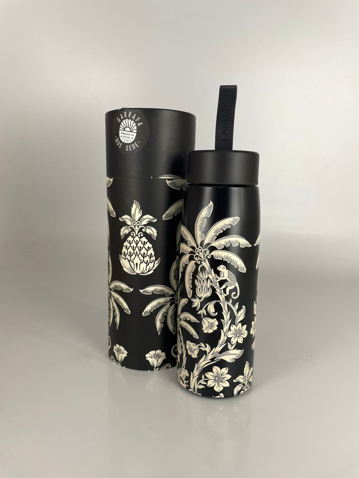 A Garrafa Que Sede 500ml Guanacaste é fabricada em aço inoxidável de alta qualidade, garantindo que não haja transferência de odores ou sabores. A estampa “Guanacaste” é inspirada na flora tropical, apresentando folhagens em tons de verde e elementos que remetem à frescura das florestas. Com um design de parede dupla e isolamento a vácuo, esta garrafa mantém a temperatura da sua bebida por períodos prolongados. O seu tamanho de 500ml é ideal para levar na mala do dia a dia, para o escritório ou para caminhadas leves, contando ainda com uma tampa de rosca com vedação hermética para evitar qualquer vazamento.