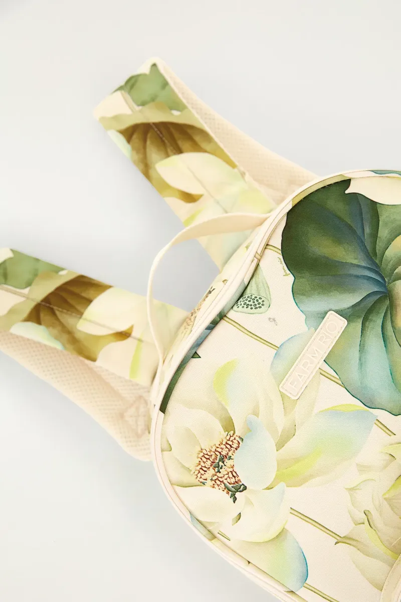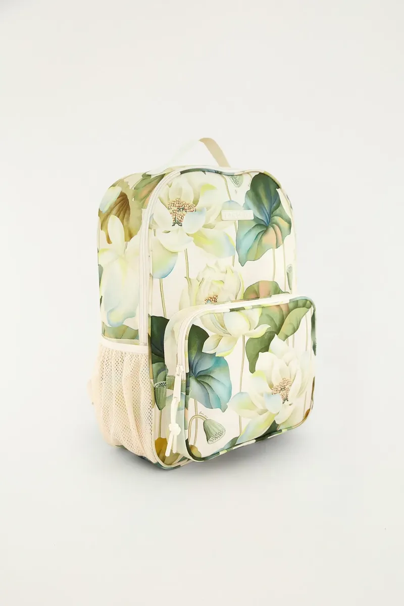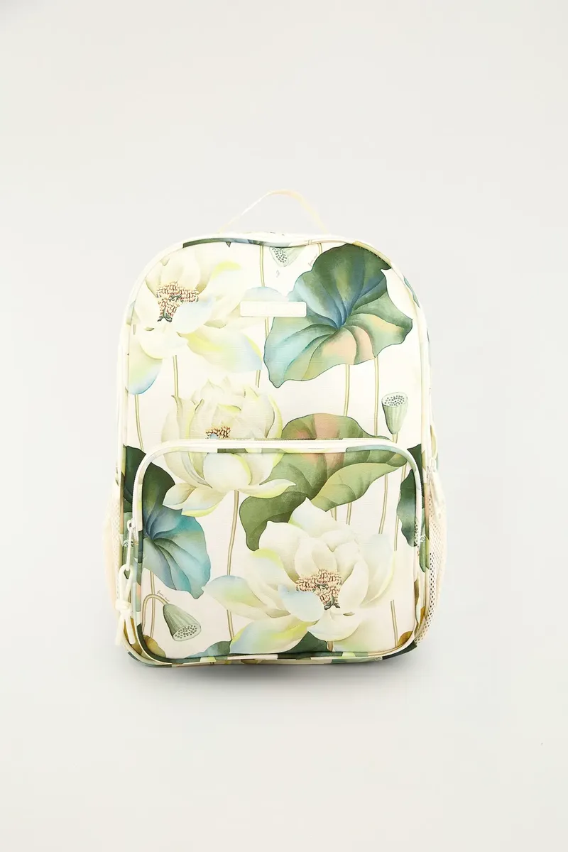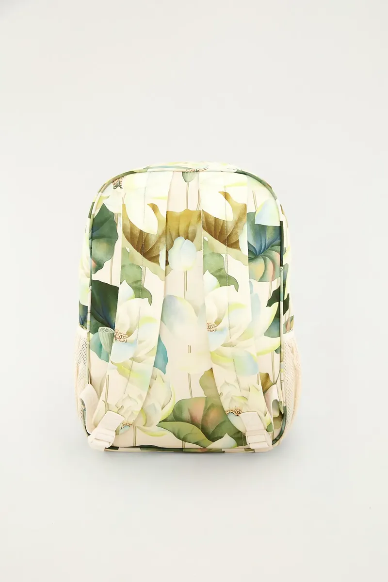 A Mochila Me Leva Wellness Chakra Rai é confeccionada em material têxtil de alta resistência (poliéster), apresentando a estampa exclusiva “Chakra Rai” em tons de verde e off-white. O design é pensado para o dia a dia, contando com um compartimento principal amplo, um bolso frontal de acesso rápido com fechamento em zíper e bolsos laterais ideais para garrafas de água. Suas alças são acolchoadas e ajustáveis, garantindo conforto durante o uso prolongado, seja nos estudos, no trabalho ou em pequenos passeios.
