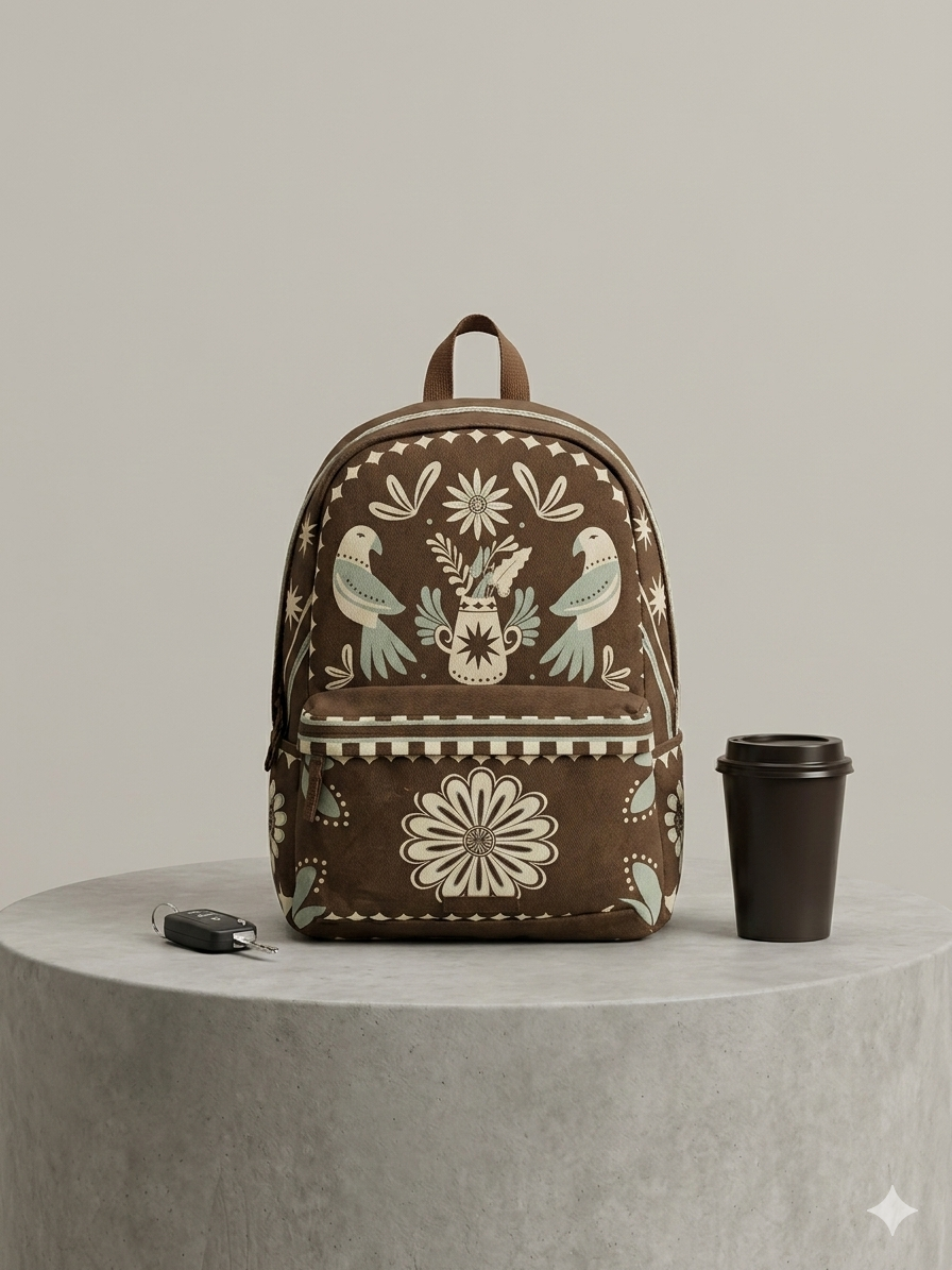 A Mochila Farm Jaipur Etc Café é confeccionada em lona de algodão de alta resistência, garantindo durabilidade para enfrentar a rotina diária. A estampa “Jaipur” é inspirada na estética ornamental indiana, apresentando padrões simétricos de pássaros e flores em tons de creme e azul-piscina sobre um fundo chocolate (café). O modelo conta com um compartimento principal amplo, um bolso frontal para itens que precisam estar sempre à mão e alças de ombro acolchoadas e ajustáveis, proporcionando conforto e um ajuste perfeito ao corpo.